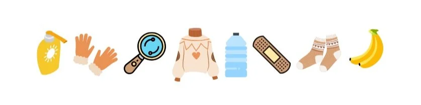 Wipes and bags: Handy for sticky fingers, dirty faces, or collecting treasures like leaves and rocks.